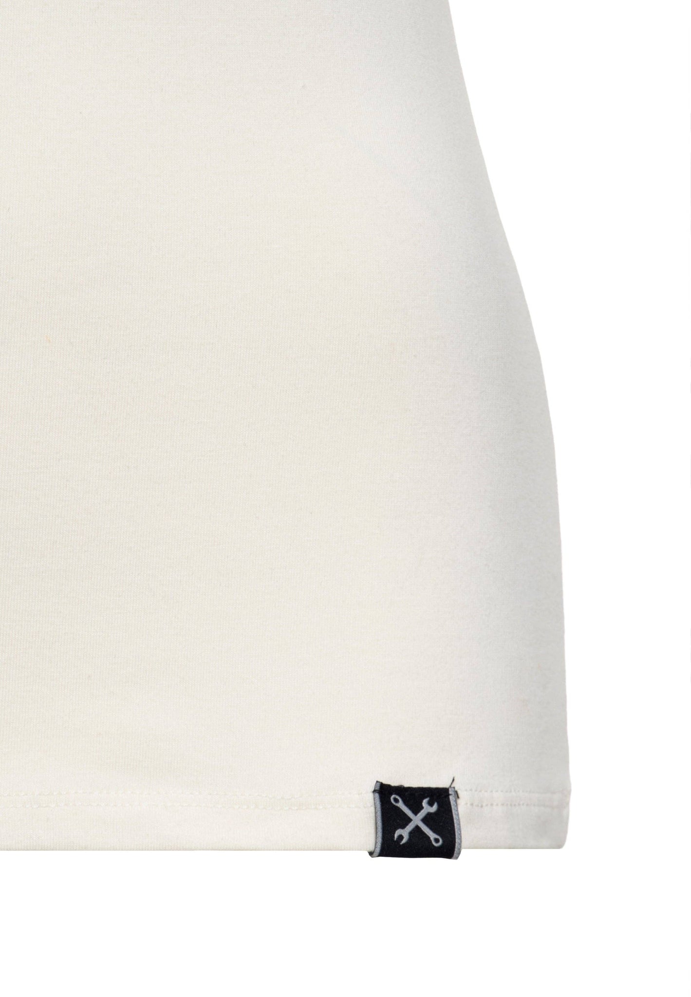 Klassisk rundhalsudskæring med logo-label ved sømmen