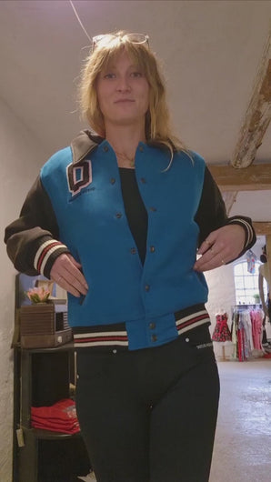 Collegejakke Rockabilly Kitten - Sort/blå ☘️