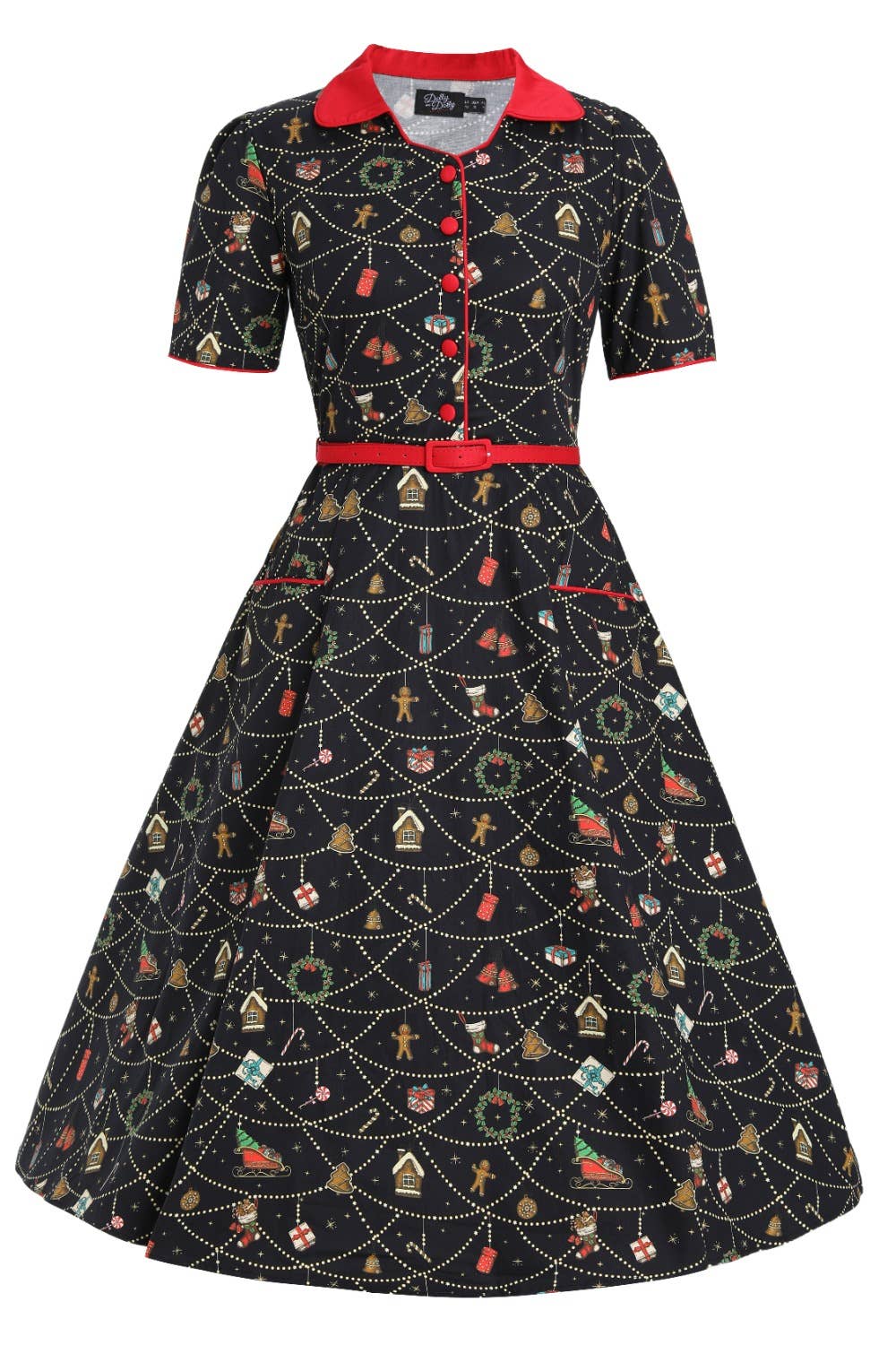 Et valgfrit taljebånd giver mulighed for et mere tilpasset look, perfekt til at udtrykke din unikke personlighed. Uanset om du udforsker en skæv café eller deltager i en temafest, bringer Julepynt Skjortekjolen et strejf af fantastisk charme til juleanledningen.