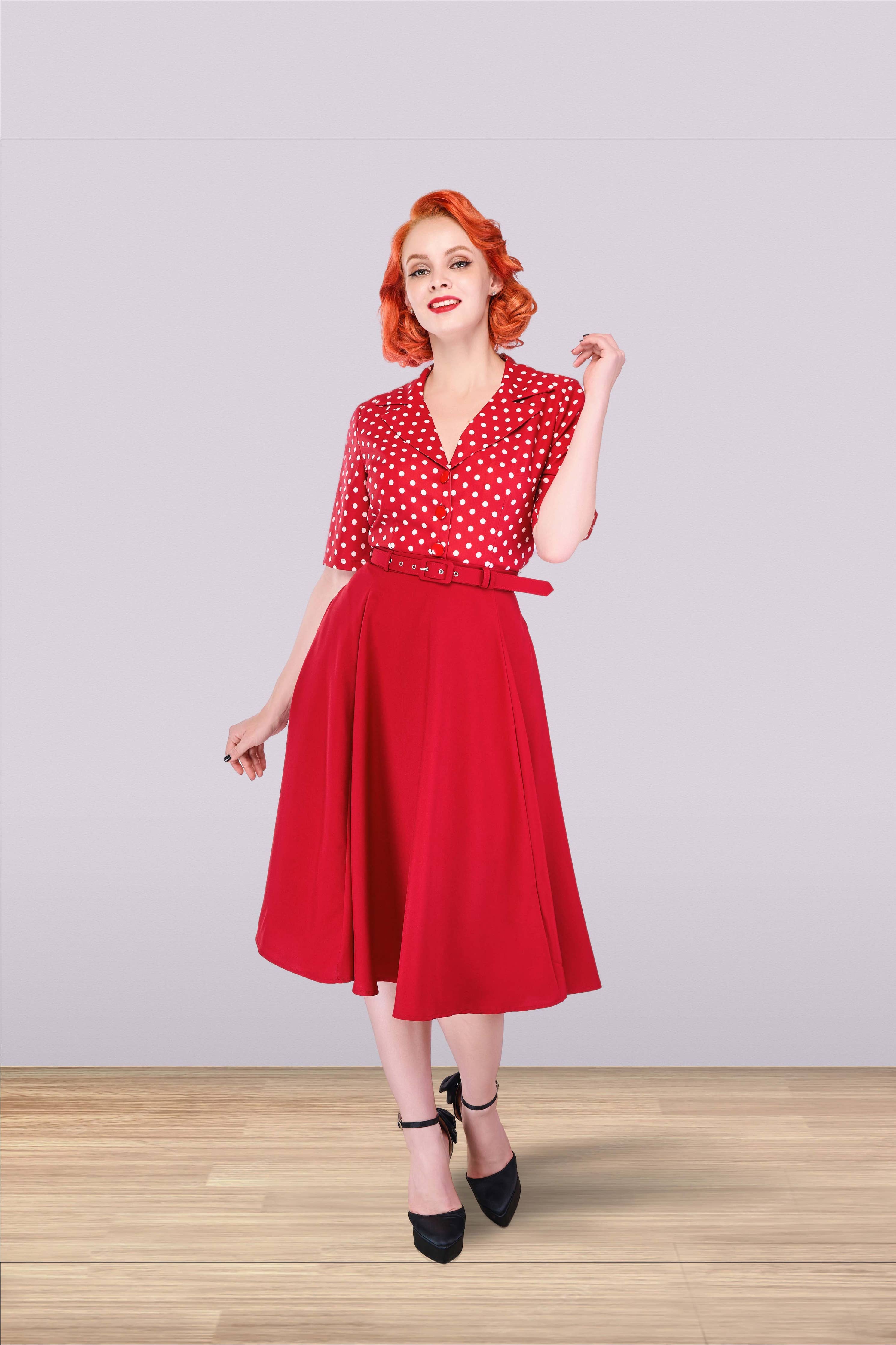 Præsenterer Christine Solid Nederdel, der byder på en blanding af klassiske stilarter og finurlige prints, herunder vores populære kirsebær- og efterårsbladprints, denne kollektion løfter ubesværet din stil.