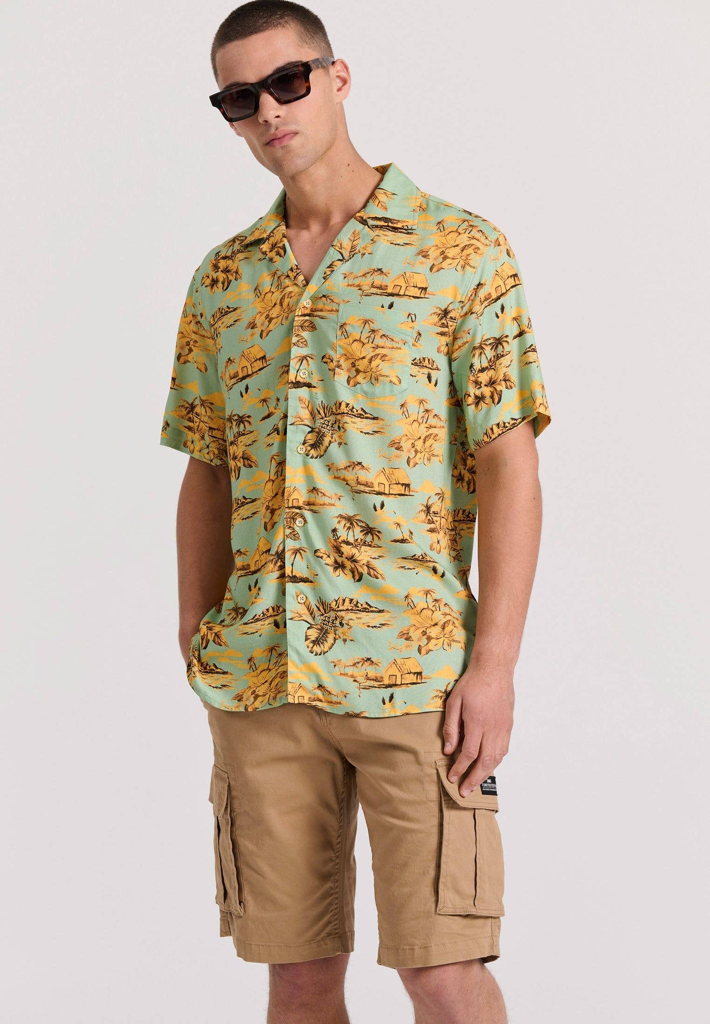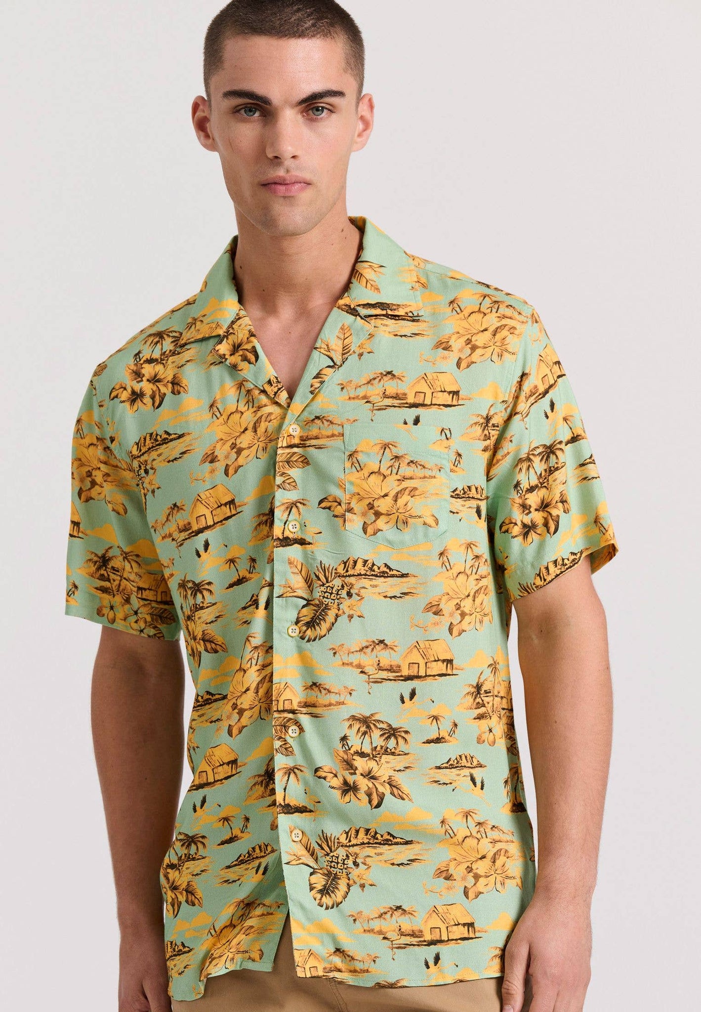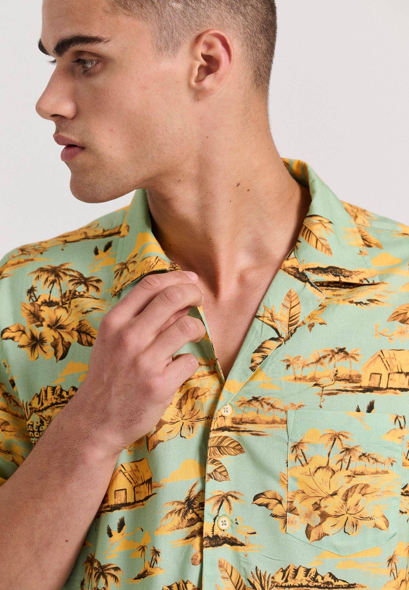 Pyntet med et iøjnefaldende all-over-print og brystlomme for ekstra anvendelighed.