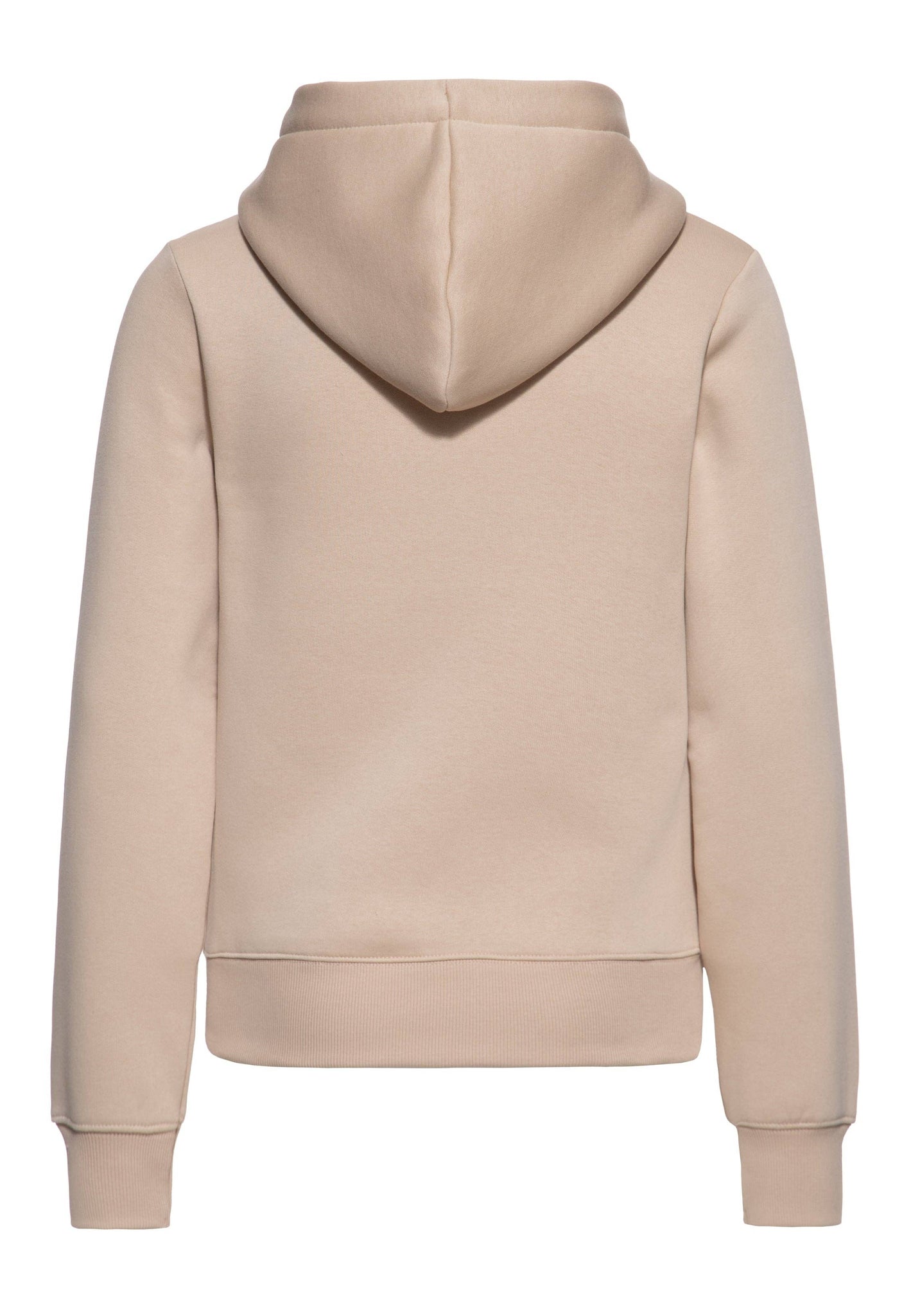 Kængurulommen samt elastiske manchetter ved ærmer og søm gør hættetrøjen både praktisk og behagelig.