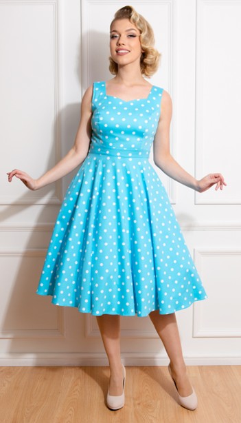 Med Ruth Polka Prik Swing Kjole, møder du en klassisk diner farvet kjole i glade farver. Denne kjole er en perfekt til en sand 50'er fest eller til old school events.